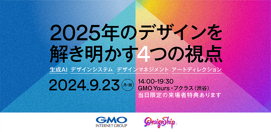 2024年9月23日(月)に「Designship 2024」のプレイベントとして、「2025年のデザインを解き明かす4つの視点 ─ 生成AI・デザインシステム・デザインマネジメント・アートディレクション」を主催いたします。